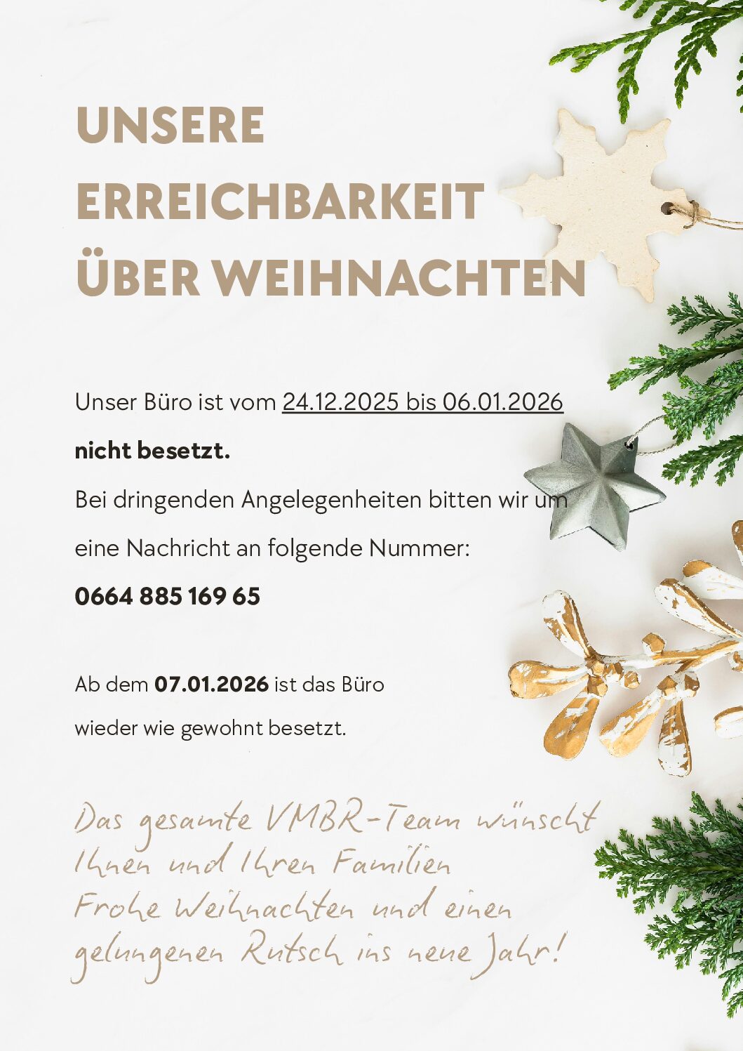 ERREICHBARKEIT ÜBER WEIHNACHTEN By Veröffentlich am 15. Dezember 2025 In Allgemein ERREICHBARKEIT ÜBER WEIHNACHTEN2025-12-152025-12-15https://www.vmbr.at/wp-content/uploads/2024/11/vmbr_logo.pngVMBR e.U. | Versicherungsmaklerhttps://www.vmbr.at/wp-content/uploads/2025/12/beige-festlich-oeffnungszeiten-silvester-weihnachten-a4-dokument-1-pdf.jpg200px200px